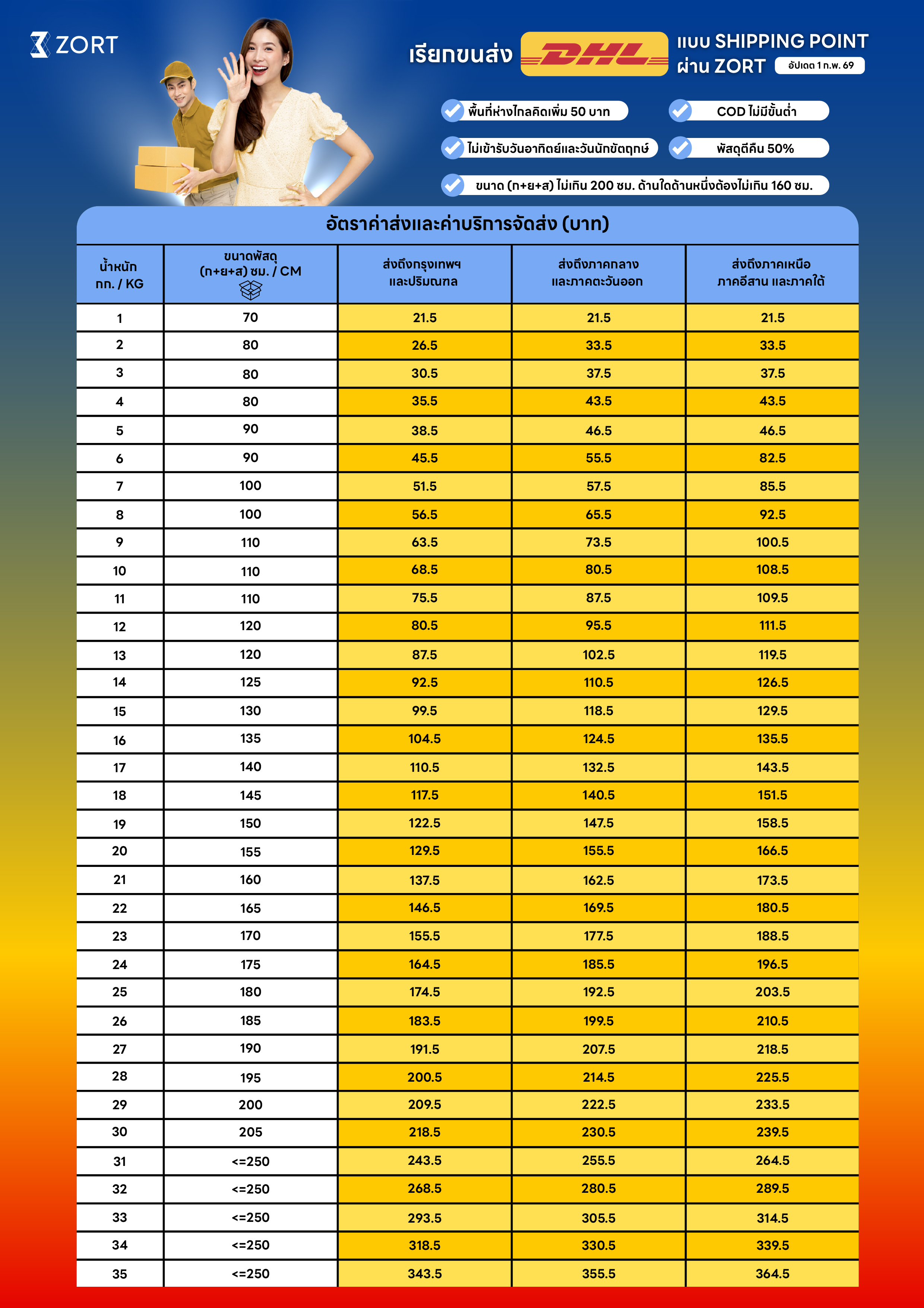 - พัสดุน้ำหนักมากกว่า 20 กก. จะคิดเพิ่ม 350 บาท