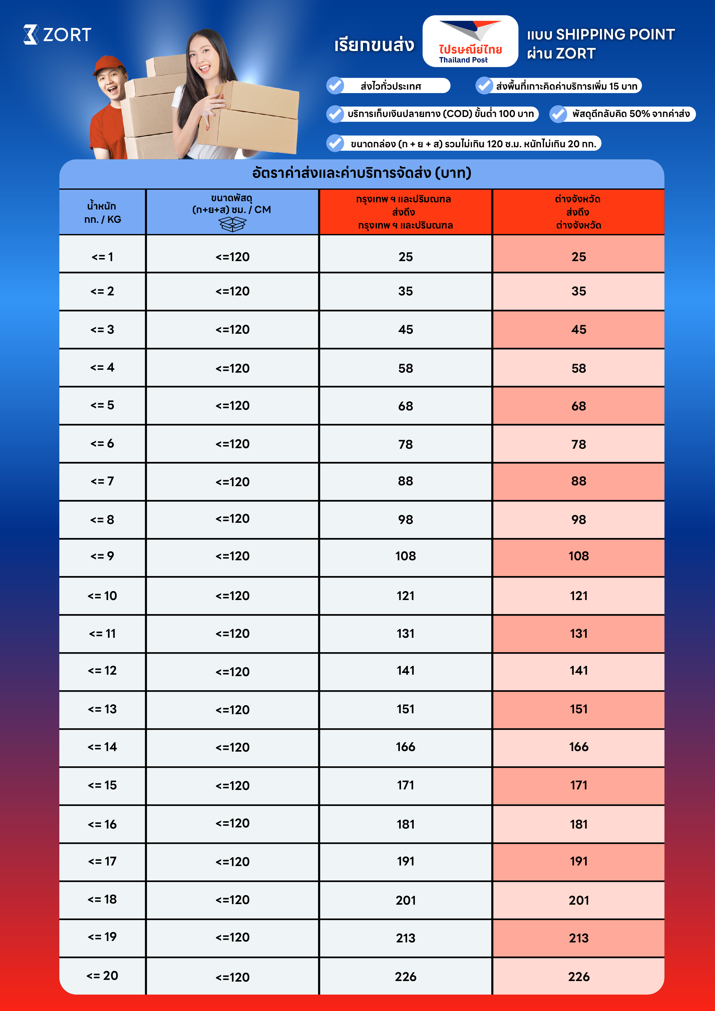 - พื้นที่หมู่เกาะคิดค่าบริการเพิ่ม 15 บาท คลิกที่นี่