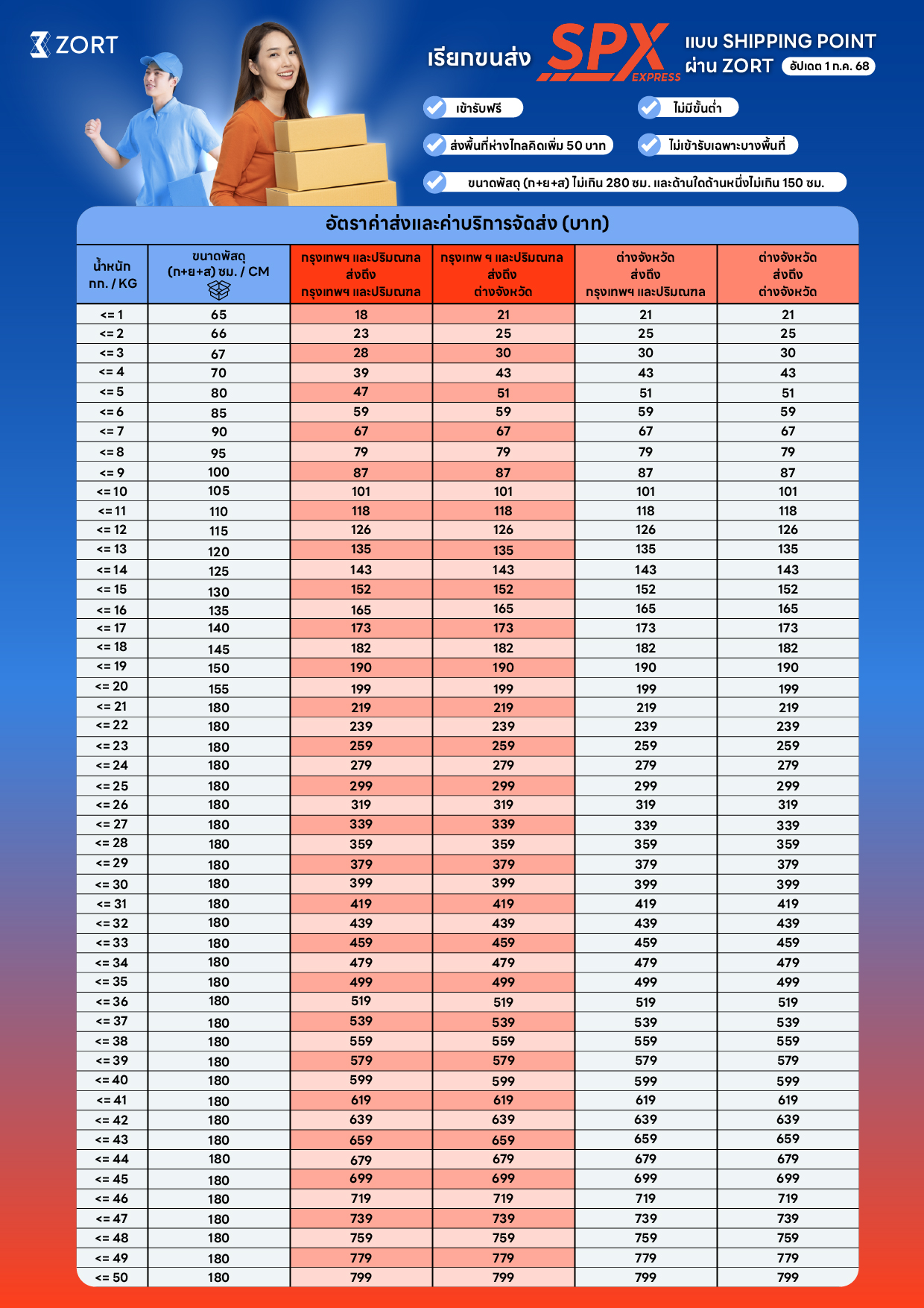 - มีค่าบริการตีกลับพัสดุ 50% ของราคาค่าขนส่ง